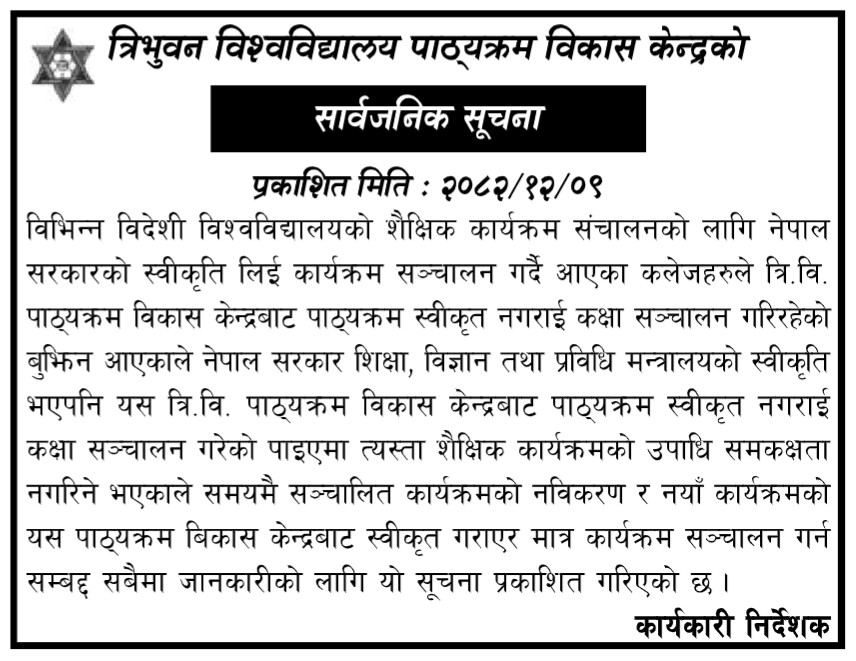 त्रिभुवन विश्वविद्यालय पाठ्यक्रम विकास केन्द्रको सार्वजनिक सूचना ।